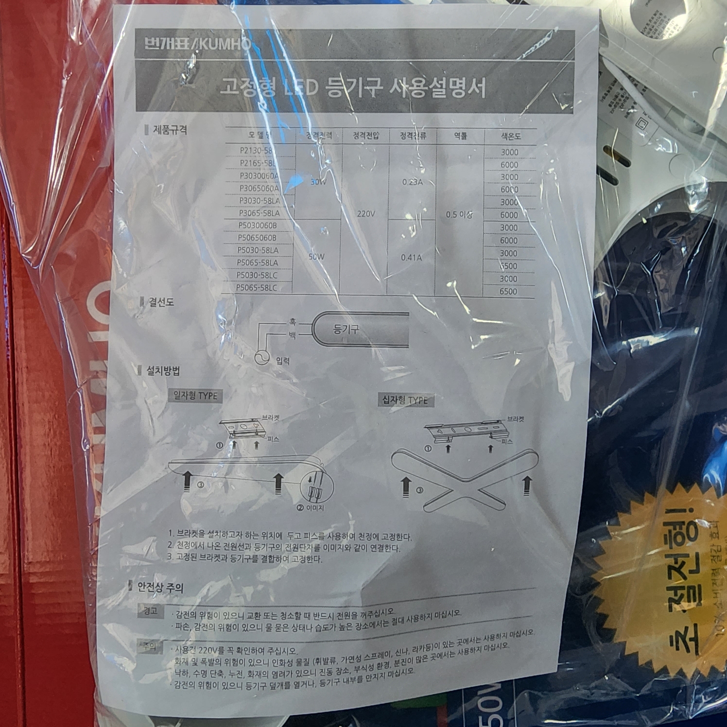 난연소재로 되어 있습니다. 전기료가 절감됩니다. 장수명 무수은 제품입니다. 고정형 제품으로 천장에 붙이는 제품입니다.